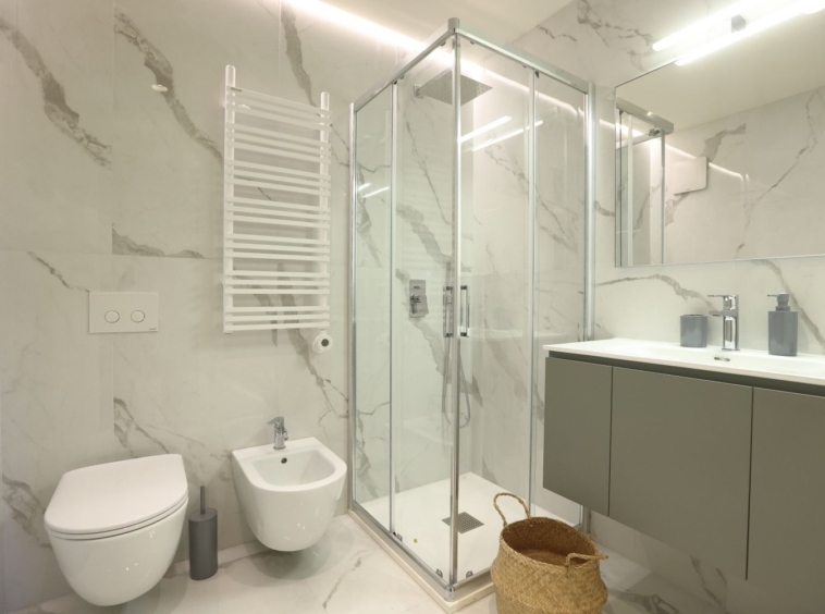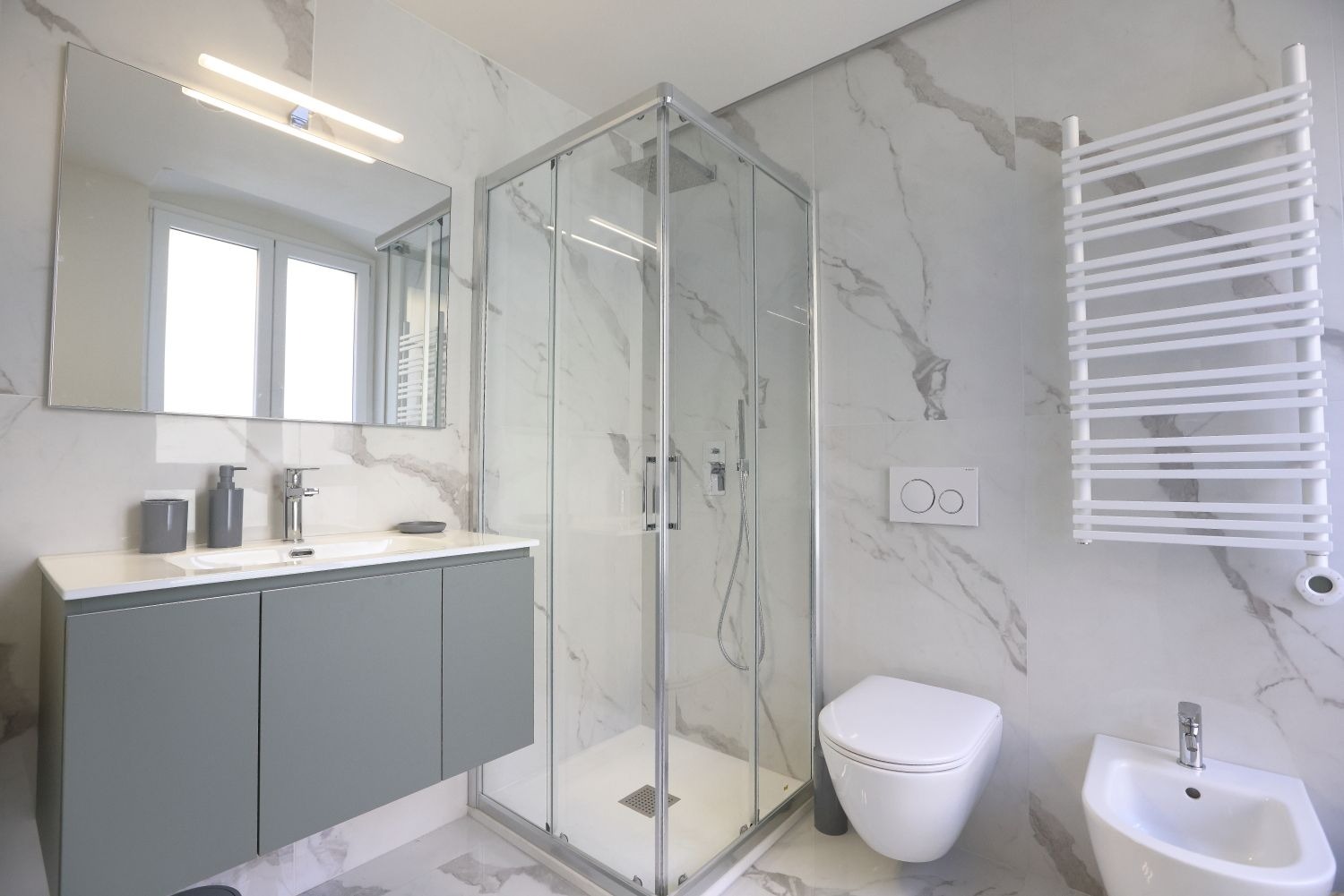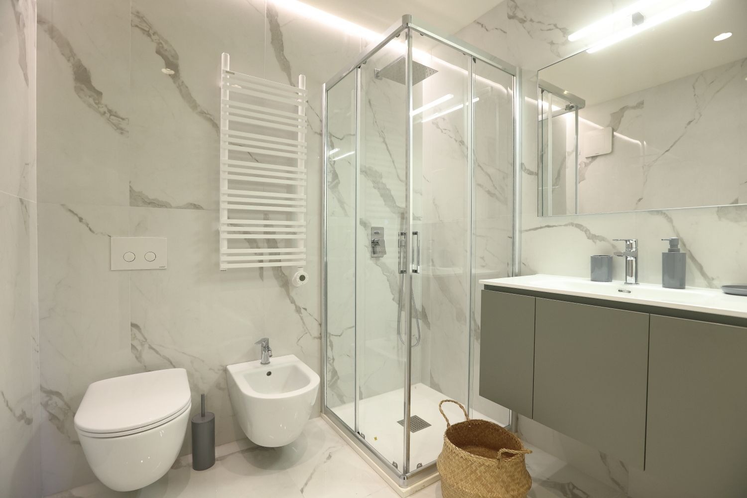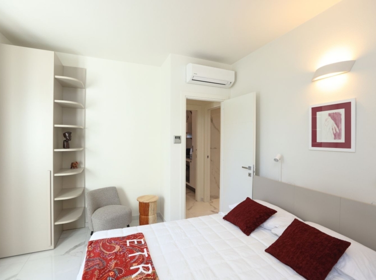 L’appartamento si compone di un luminoso soggiorno con cucina attrezzata con elettrodomestici premium, sapientemente progettato per unire funzionalità ed eleganza, camera da letto matrimoniale, due bagni moderni con finiture di alto livello e spazi ben distribuiti.