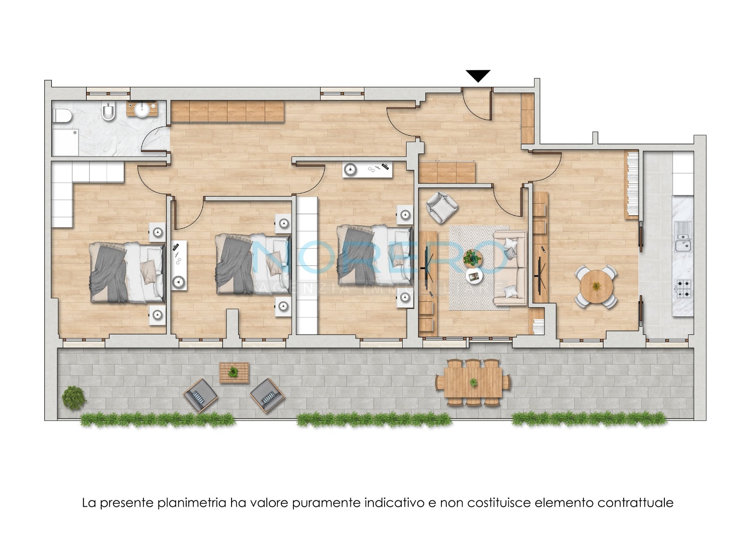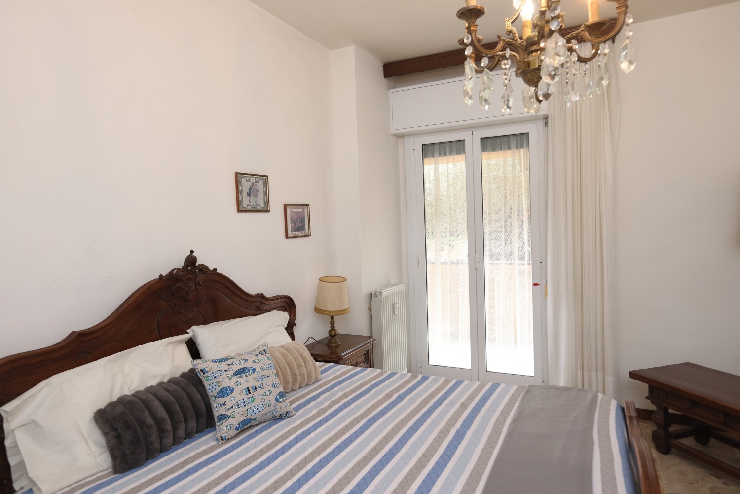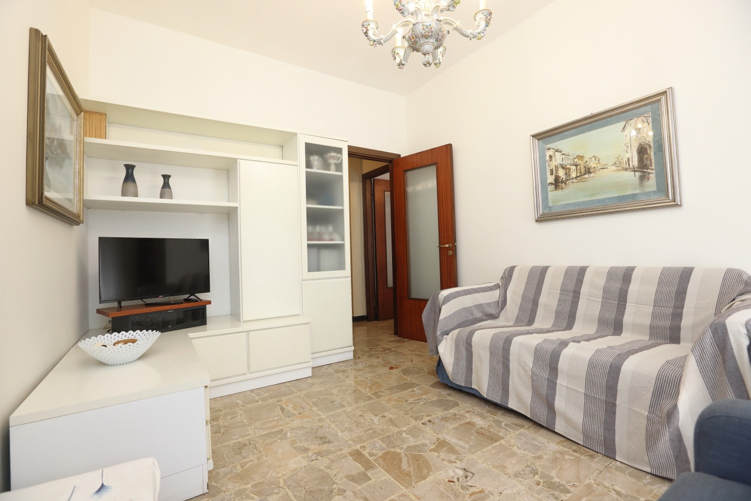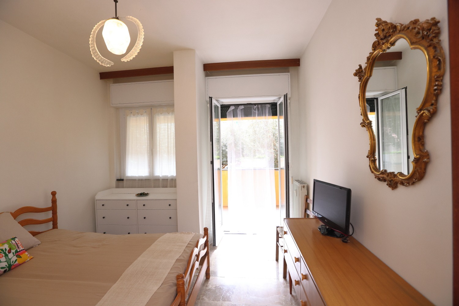 Gli spazi colpiscono subito per ampiezza e luminosità: quattro camere da letto, bagno finestrato e una zona giorno in cui soggiorno e cucina comunicano attraverso pratiche porte scorrevoli, donando continuità e flessibilità all’intero living.
